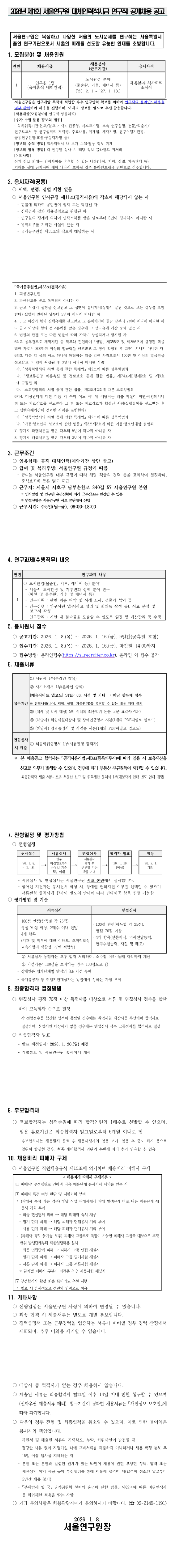 ¼¿ï¿¬±¸¿ø 2026³â Á¦1ȸ ´ëüÀηÂ(¼®»ç±Þ ¿¬±¸Á÷) ä¿ë °ø°í