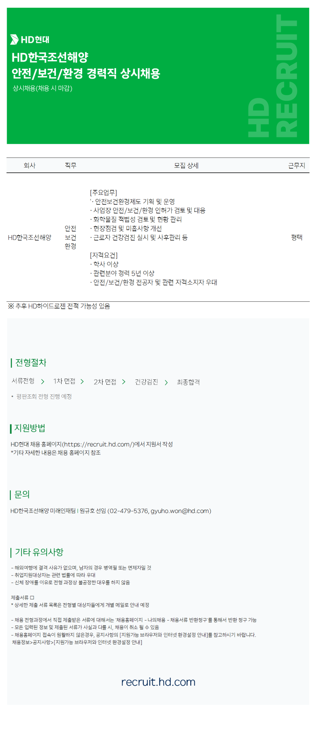 [HDÇѱ¹Á¶¼±Çؾç] 26³â ¾ÈÀü/º¸°Ç/ȯ°æ ´ã´çÀÚ »ó½Ãä¿ë