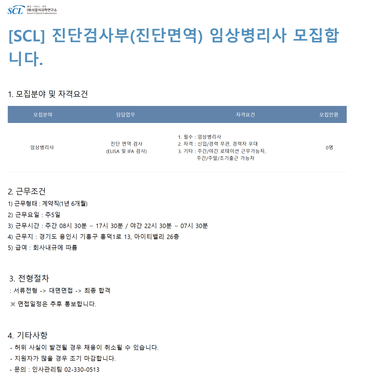 [SCL] Áø´Ü°Ë»çºÎ(Áø´Ü¸é¿ª) ÀÓ»óº´¸®»ç ¸ðÁýÇÕ´Ï´Ù.