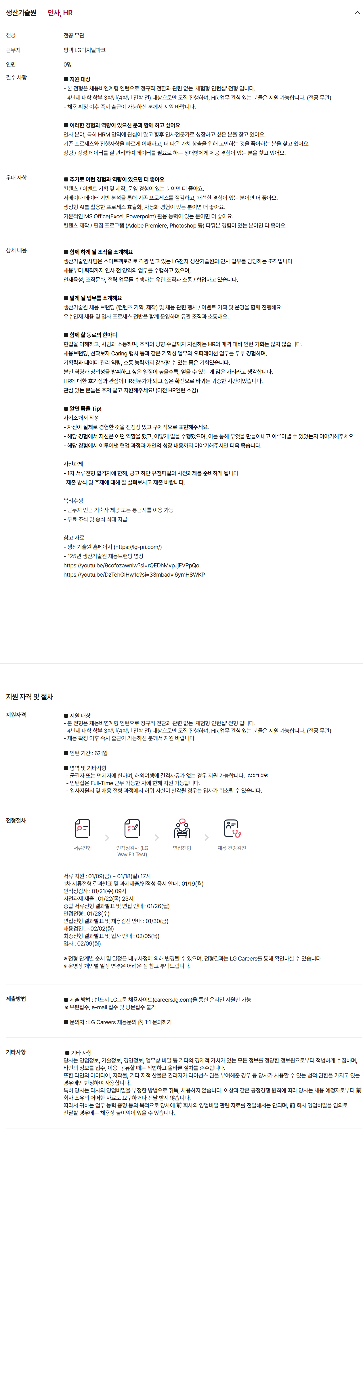 »ý»ê±â¼úÀλçÆÀÀº ½º¸¶Æ®ÆÑÅ丮·Î °¢±¤ ¹Þ°í ÀÖ´Â LGÀüÀÚ »ý»ê±â¼ú¿øÀÇ ÀÎ»ç ¾÷¹«¸¦ ´ã´çÇÏ´Â Á¶Á÷ÀÔ´Ï´Ù.