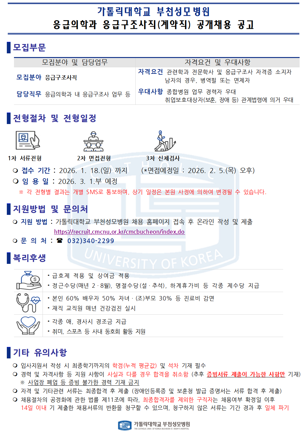 [ºÎõ¼º¸ð]ÀÀ±ÞÀÇÇаú ÀÀ±Þ±¸Á¶»çÁ÷(°è¾àÁ÷) °ø°³Ã¤¿ë °ø°í