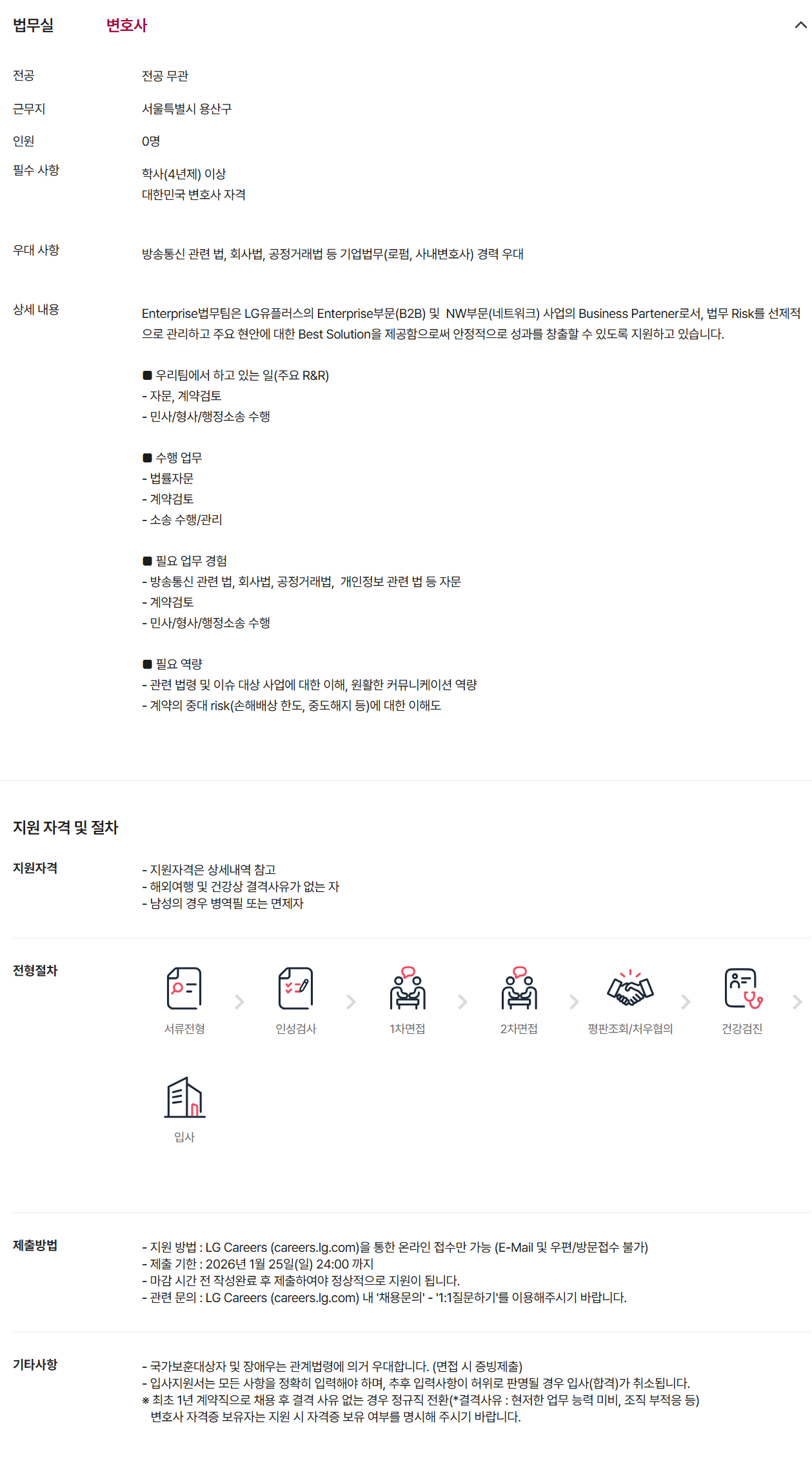 Enterprise¹ý¹«ÆÀÀº LGÀ¯Ç÷¯½ºÀÇ EnterpriseºÎ¹®(B2B) ¹× NWºÎ¹®(³×Æ®¿öÅ©) »ç¾÷ÀÇ Business Partener·Î¼, ¹ý¹« Risk¸¦ ¼±Á¦ÀûÀ¸·Î °ü¸®Çϰí ÁÖ¿ä Çö¾È¿¡ ´ëÇÑ Best SolutionÀ» Á¦°øÇÔÀ¸·Î½á ¾ÈÁ¤ÀûÀ¸·Î ¼º°ú¸¦ âÃâÇÒ ¼ö ÀÖµµ·Ï Áö¿øÇϰí ÀÖ½À´Ï´Ù.