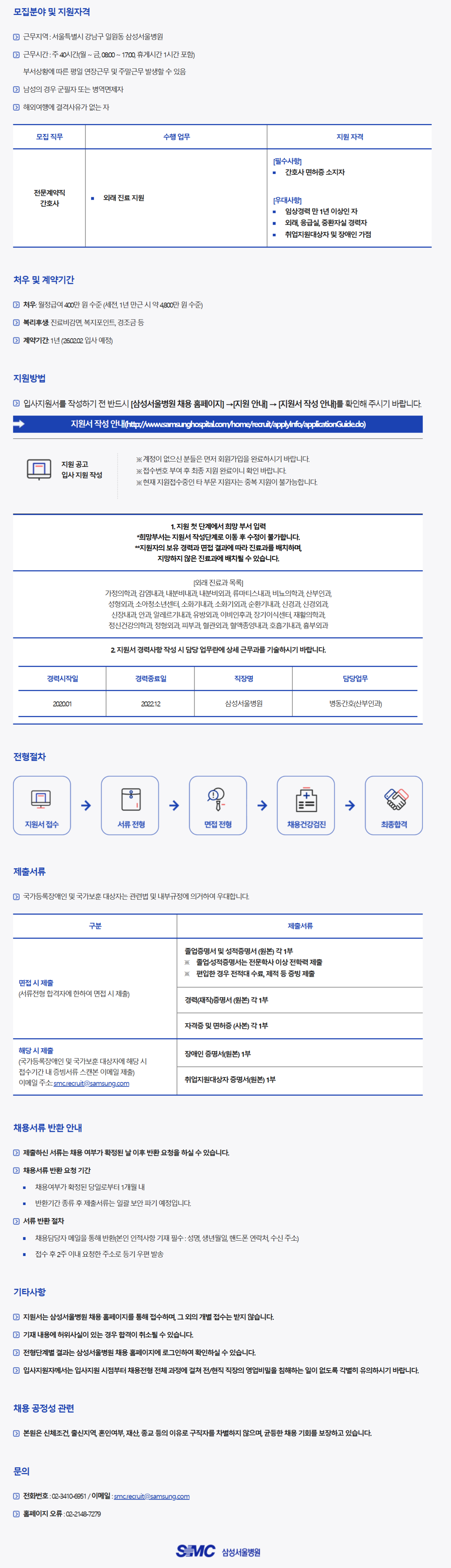 ¸ðÁý Á÷¹« ¼öÇà ¾÷¹« Áö¿ø ÀÚ°Ý Àü¹®°è¾àÁ÷ °£È£»ç ¿Ü·¡ Áø·á Áö¿ø [Çʼö»çÇ×] °£È£»ç ¸éÇãÁõ ¼ÒÁöÀÚ [¿ì´ë»çÇ×] ÀÓ»ó°æ·Â ¸¸ 1³â ÀÌ»óÀÎ ÀÚ ¿Ü·¡, ÀÀ±Þ½Ç, ÁßȯÀÚ½Ç °æ·ÂÀÚ Ãë¾÷Áö¿ø´ë»óÀÚ ¹× Àå¾ÖÀÎ °¡Á¡