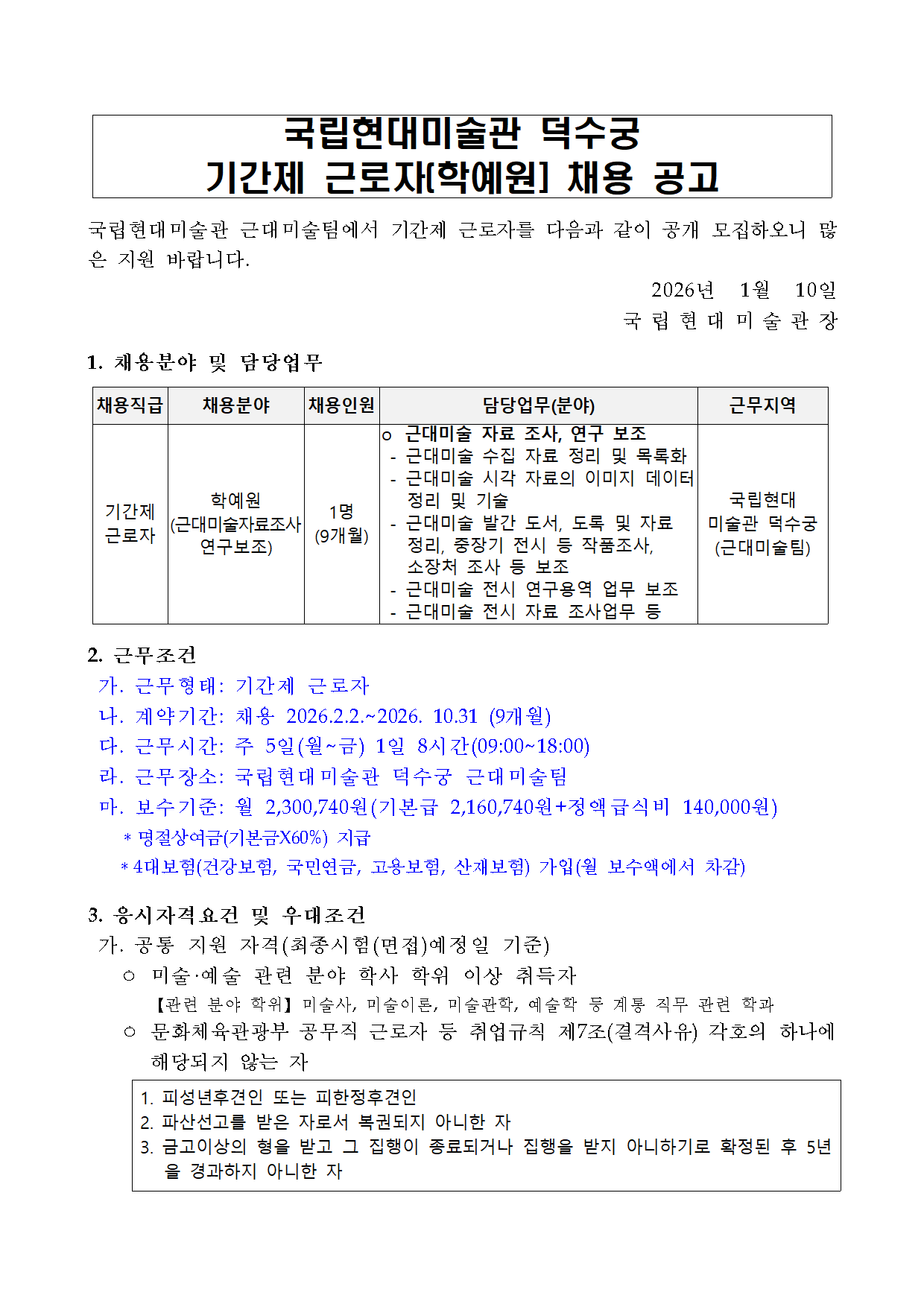 ±¹¸³Çö´ë¹Ì¼ú°ü ±Ù´ë¹Ì¼úÆÀ¿¡¼ ±â°£Á¦ ±Ù·ÎÀÚ¸¦ ´ÙÀ½°ú °°ÀÌ °ø°³ ¸ðÁýÇÏ¿À´Ï ¸¹