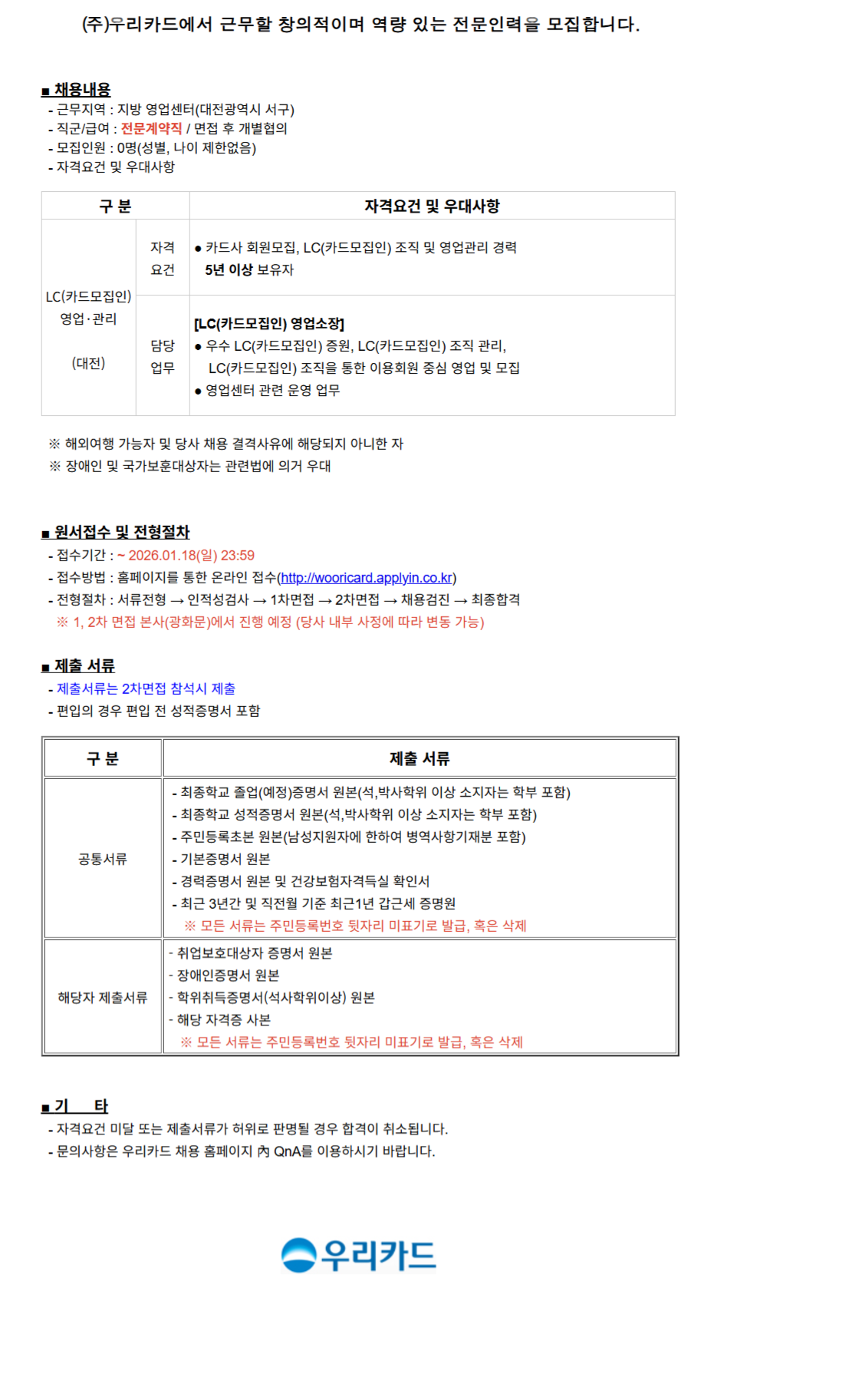 ¿ì¸®Ä«µå °æ·ÂÁ÷ ä¿ë°ø°í(´ëÀü-LC(Ä«µå¸ðÁýÀÎ)¿µ¾÷¡¤°ü¸®)
