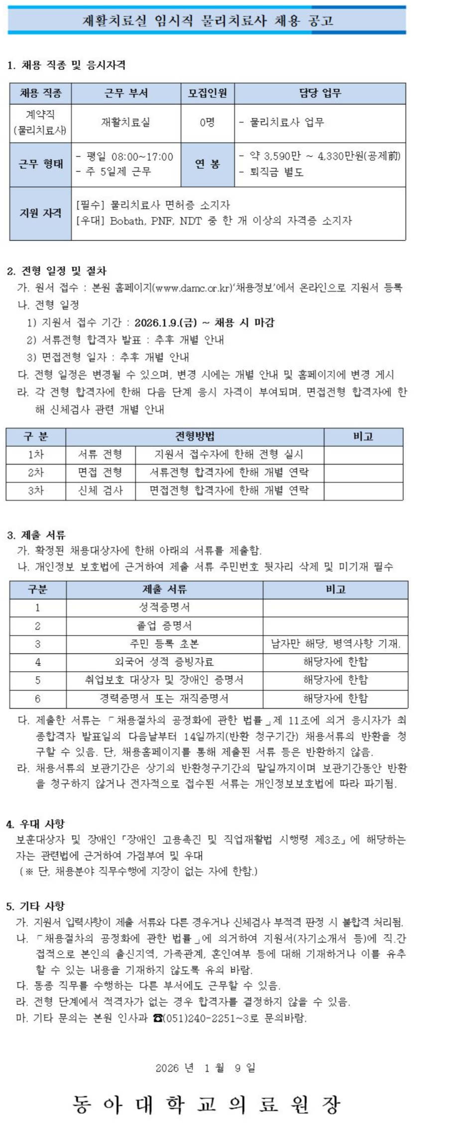 ÀçȰġ·á½Ç ÀÓ½ÃÁ÷ ¹°¸®Ä¡·á»ç ä¿ë °ø°í
