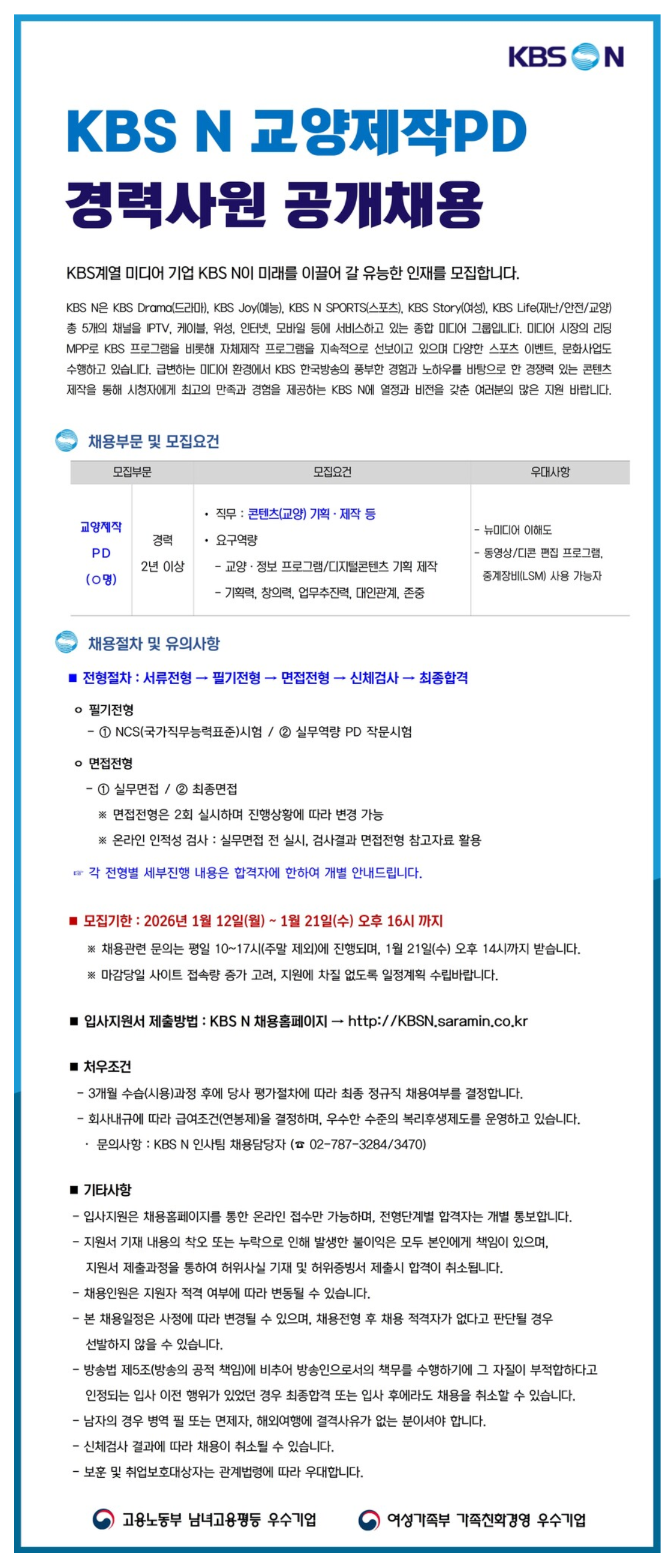 [KBS N] ±³¾çÁ¦ÀÛPD °æ·Â»ç¿ø °ø°³Ã¤¿ë