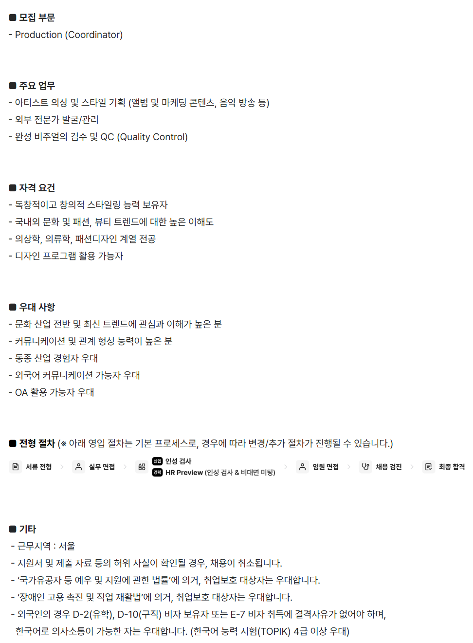 [JYP ENTERTAINMENT] Production (Coordinator) (½ÅÀÔ)