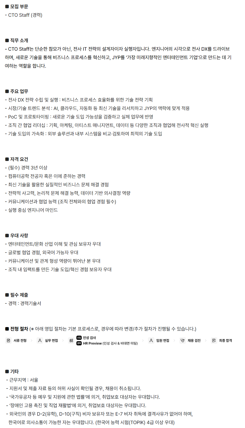 [JYP ENTERTAINMENT] CTO Staff (°æ·Â)