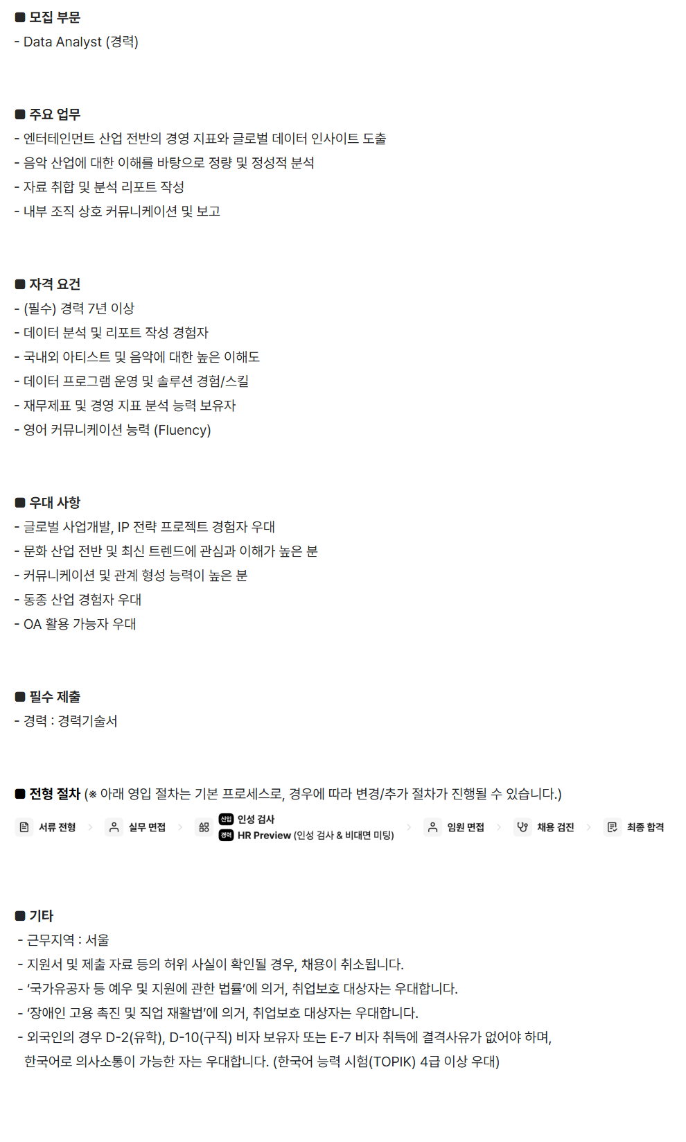 [JYP ENTERTAINMENT] Data Analyst (°æ·Â)