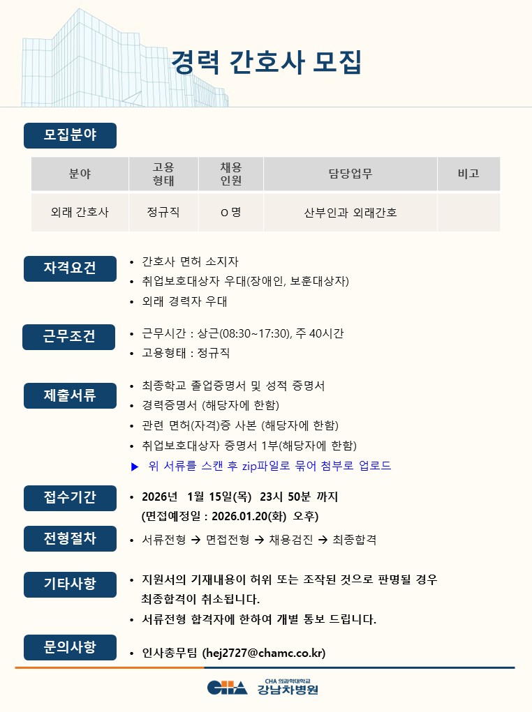 [°³²Â÷º´¿ø] °æ·ÂÁ÷ °£È£»ç(¿Ü·¡) ¸ðÁý