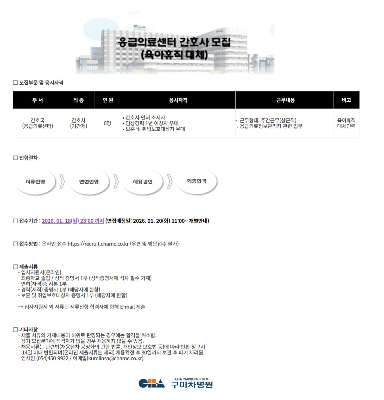 [±¸¹ÌÂ÷º´¿ø] ÀÀ±ÞÀÇ·á¼¾ÅÍ °£È£»ç ¸ðÁý(±â°£Á¦)