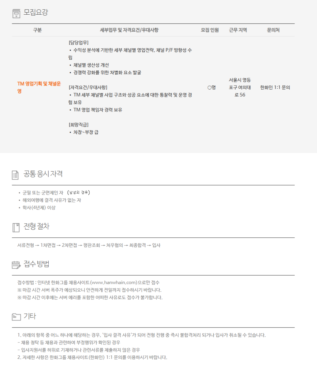 ÇÑȼÕÇØº¸Çè(ÁÖ) °æ·ÂÁ÷ ä¿ë - TM ¿µ¾÷±âȹ ¹× ä³Î ¿î¿µ Á÷¹«