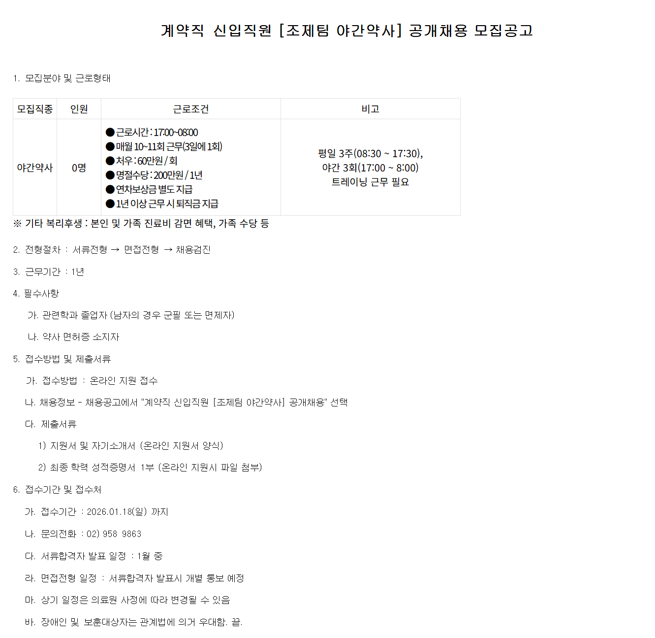 °è¾àÁ÷ ½ÅÀÔÁ÷¿ø [Á¶Á¦ÆÀ ¾ß°£¾à»ç] °ø°³Ã¤¿ë ¸ðÁý°ø°í