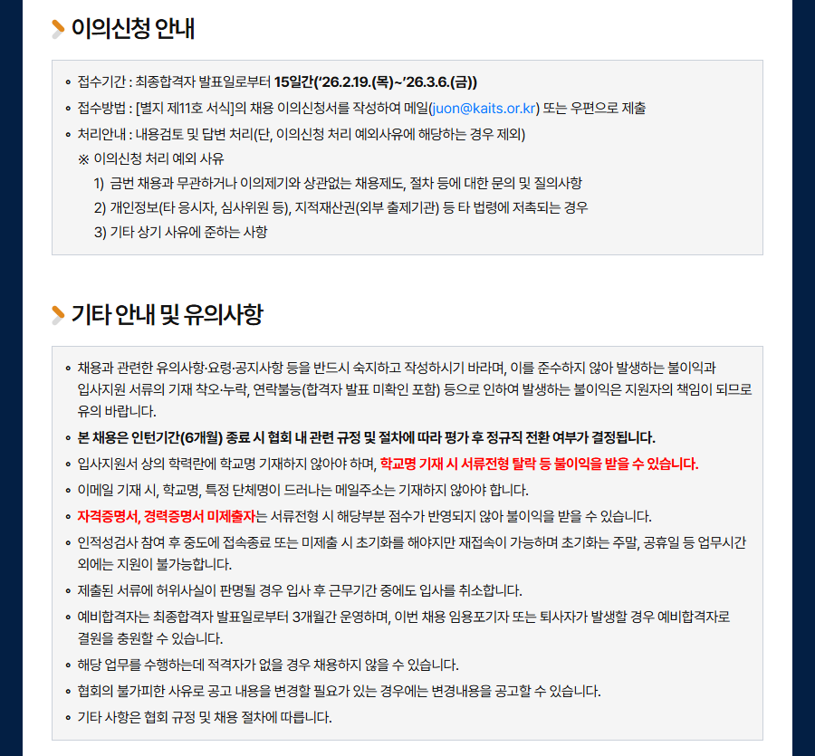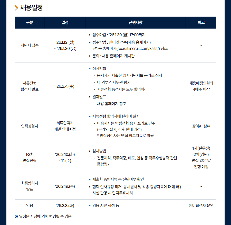 ¡Ø ÀÚ¼¼ÇÑ ³»¿ëÀº ä¿ë ȨÆäÀÌÁö(recruit.incruit.com/kaits/) °øÁö»çÇ× ÂüÁ¶