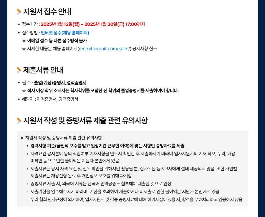 ¹× ¿ø¼Á¢¼ö ~ 2025.12.29.(¿ù) - ä¿ë ȨÆäÀÌÁö(recruit.incruit.com/kaits/) ÂüÁ¶