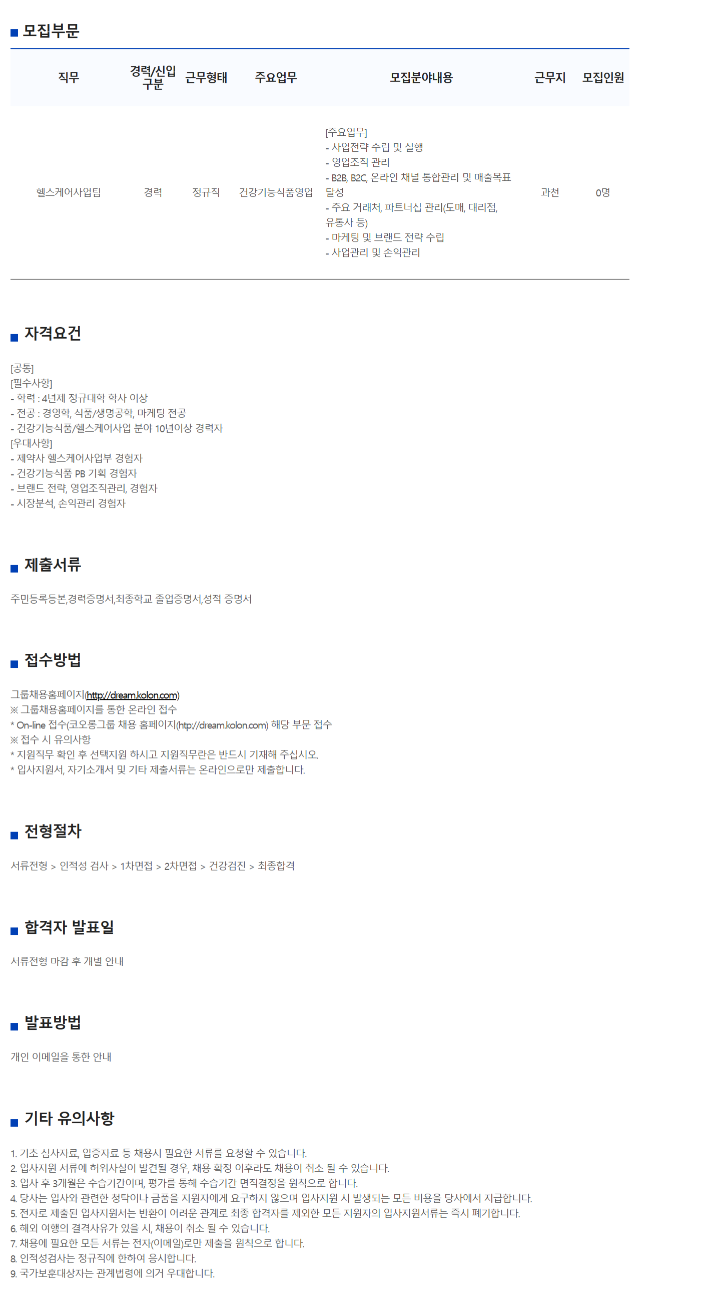 ÇコÄɾî»ç¾÷ÆÀ °æ·Â Á¤±ÔÁ÷ °Ç°±â´É½Äǰ¿µ¾÷ [ÁÖ¿ä¾÷¹«]