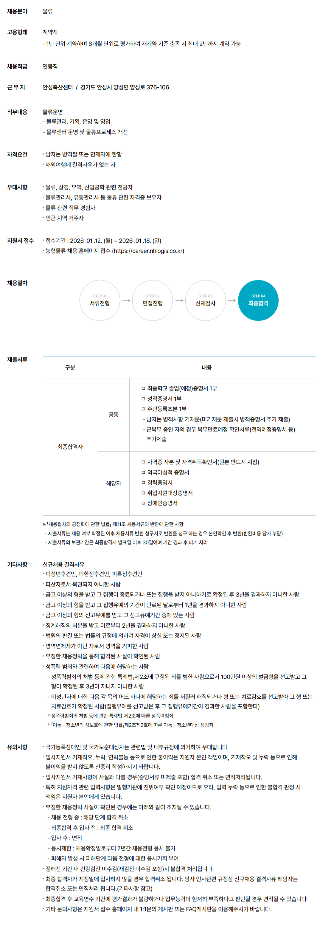 ³óÇù¹°·ù ä¿ë ȨÆäÀÌÁö Á¢¼ö (https://career.nhlogis.co.kr)