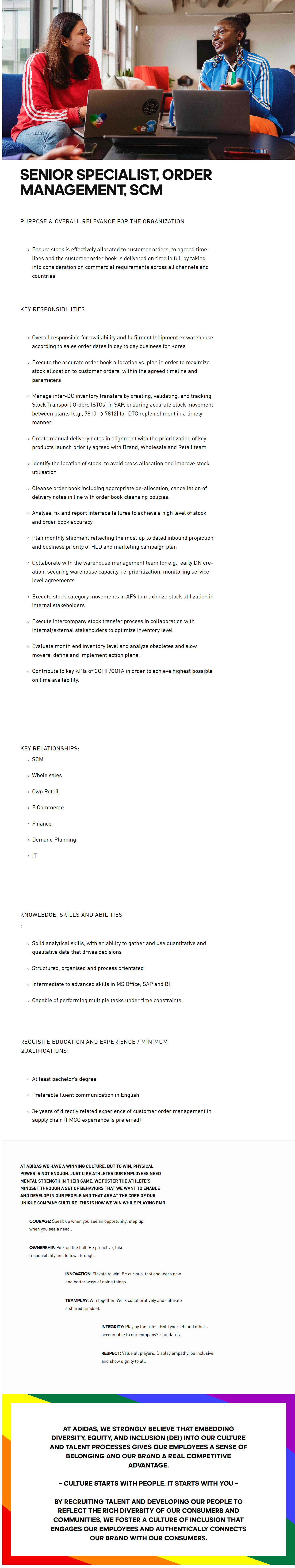 3+ years of directly related experience of customer order management in supply chain (FMCG experience is preferred)