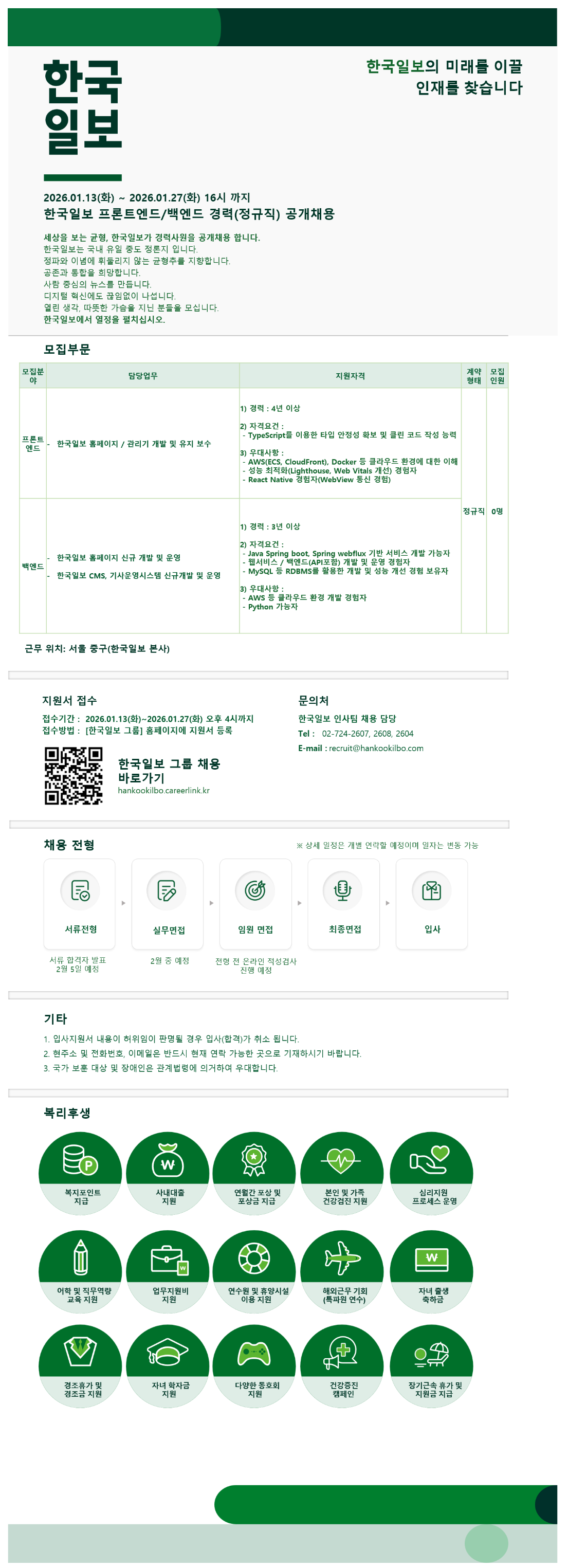 [°æ·Â] Çѱ¹ÀϺ¸ ÇÁ·ÐÆ®¿£µå/¹é¿£µå °æ·Â(Á¤±ÔÁ÷) °ø°³ ä¿ë