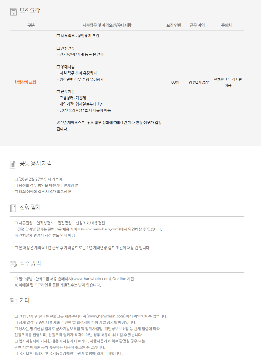 ÇÑÈ¿¡¾î·Î½ºÆäÀ̽º â¿ø2»ç¾÷Àå(Ç×¹ý»ç¾÷) »ý»êÀü¹®Á÷(°è¾àÁ÷) ä¿ë