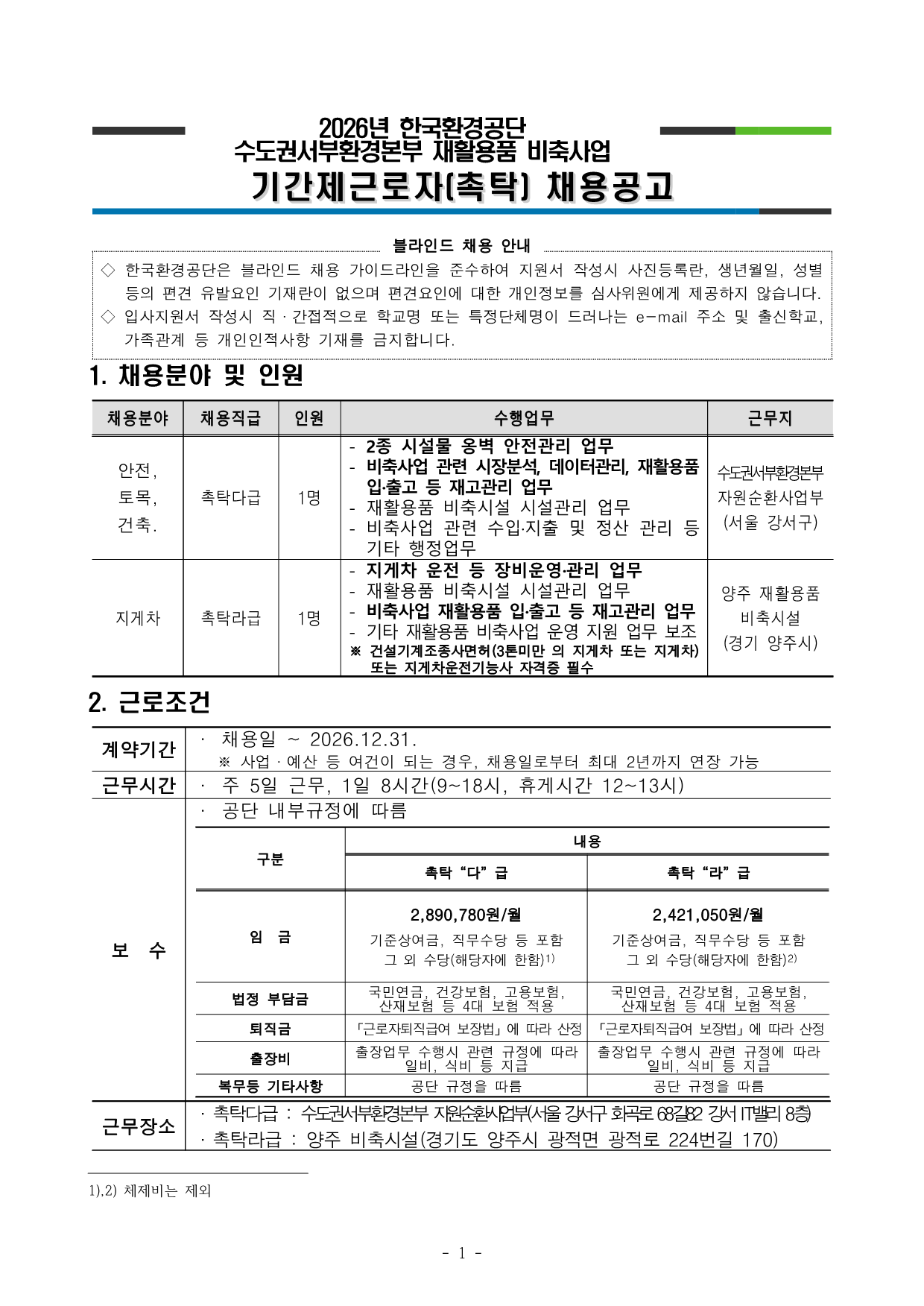 2026³â Çѱ¹È¯°æ°ø´Ü ¼öµµ±Ç¼ºÎȯ°æº»ºÎ ÀçȰ¿ëǰ ºñÃà»ç¾÷ ±â°£Á¦±Ù·ÎÀÚ(ÃËŹ) ä¿ë°ø°í