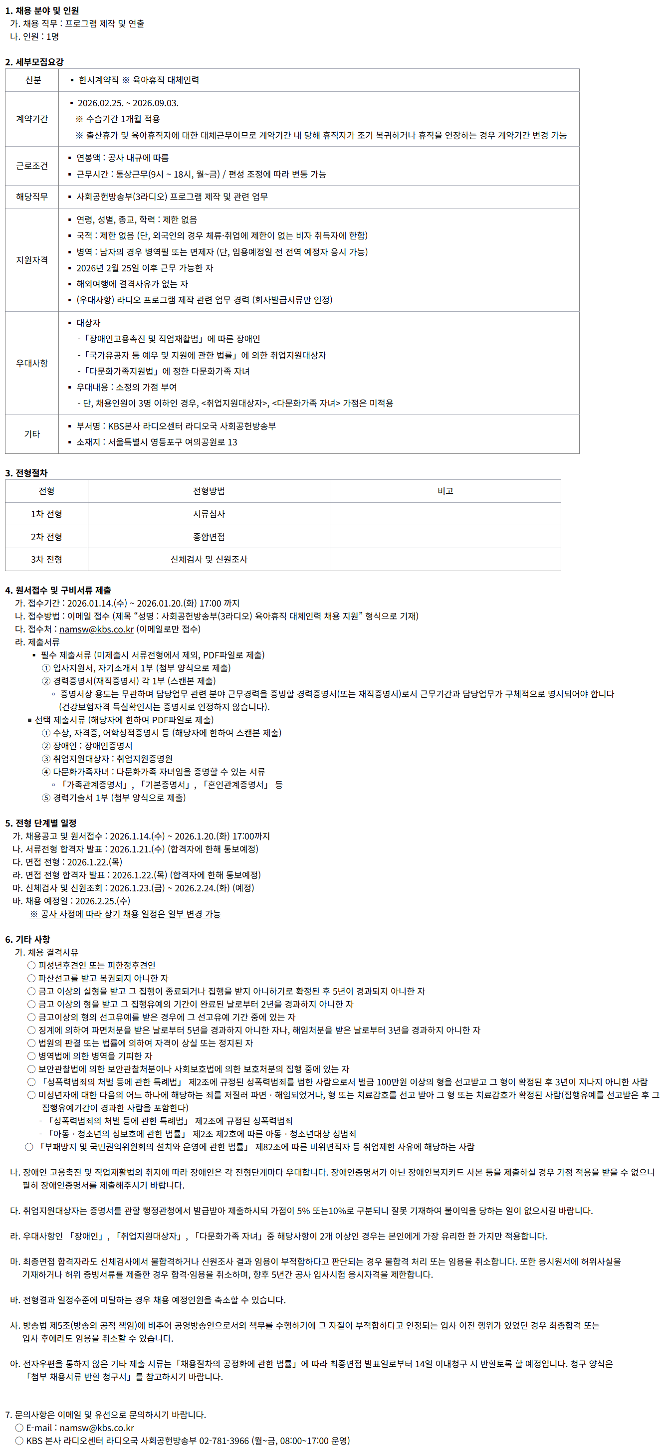 °¡. ä¿ë°ø°í ¹× ¿ø¼Á¢¼ö : 2026.1.14.(¼ö) ~ 2026.1.20.(È) 17:00±îÁö