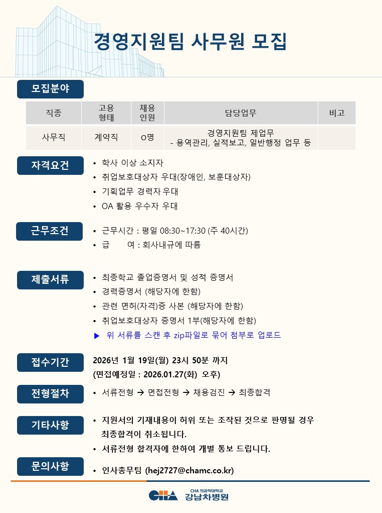 [°³²Â÷º´¿ø] °æ¿µÁö¿øÆÀ »ç¹«¿ø ¸ðÁý