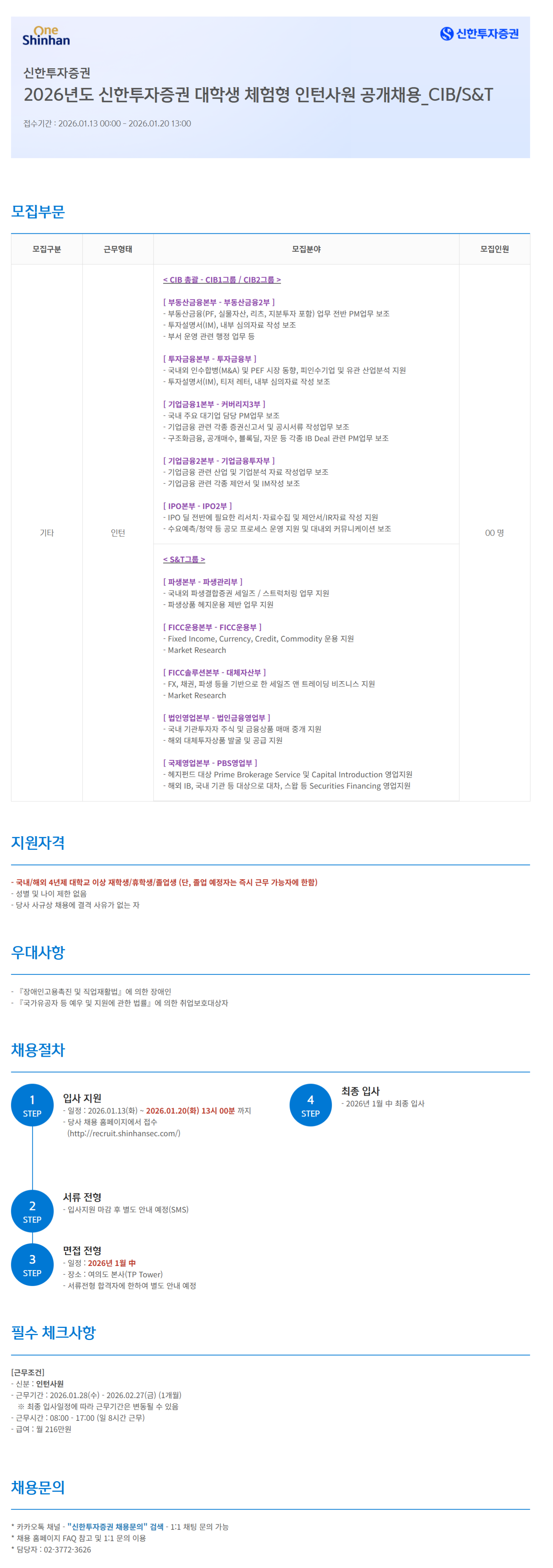 2026³âµµ ½ÅÇÑÅõÀÚÁõ±Ç ´ëÇлý üÇèÇü ÀÎÅÏ»ç¿ø °ø°³Ã¤¿ë_CIB/S&T