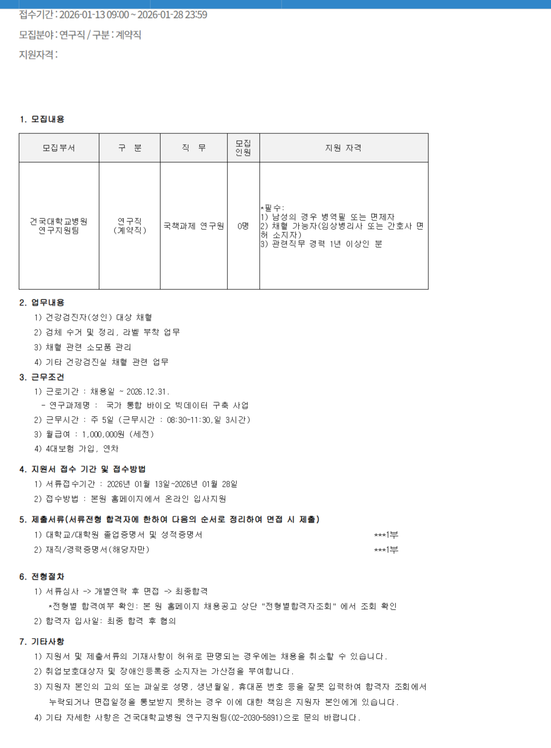 4) ±âŸ ÀÚ¼¼ÇÑ »çÇ×Àº °Ç±¹´ëÇб³º´¿ø ¿¬±¸Áö¿øÆÀ(***-****-****)À¸·Î ¹®ÀÇ ¹Ù¶ø´Ï´Ù.