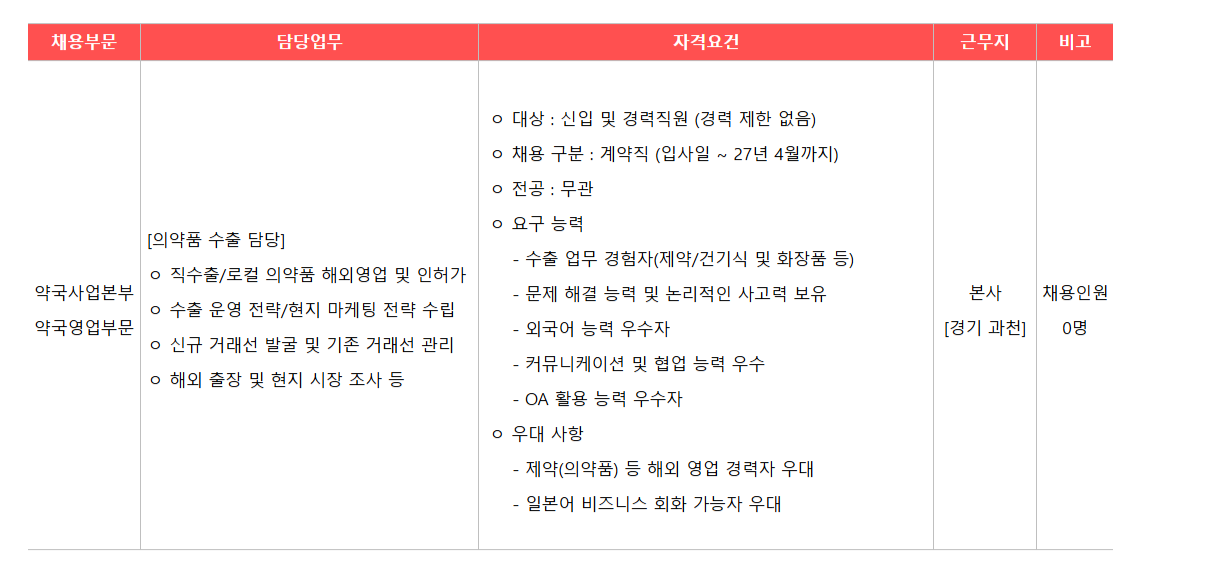 [±¤µ¿Á¦¾à] ¾à±¹¿µ¾÷ºÎ¹® ÀǾàǰ ¼öÃâ ´ã´ç ½ÅÀÔ ¹× °æ·ÂÁ÷¿ø ¸ðÁý(°è¾àÁ÷)
