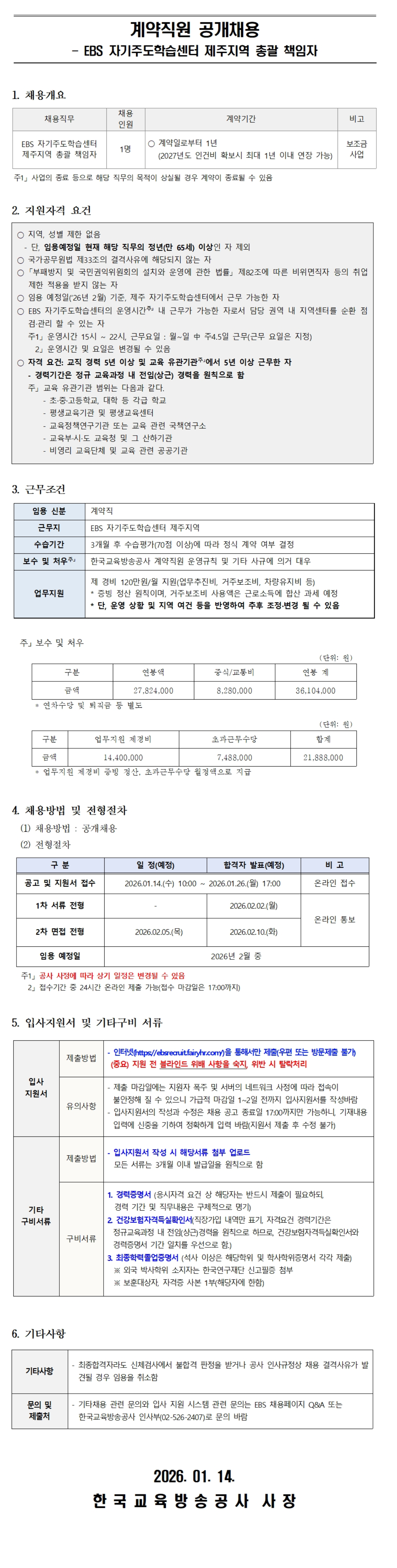 °è¾àÁ÷¿ø(EBS ÀÚ±âÁÖµµÇнÀ¼¾ÅÍ Á¦ÁÖÁö¿ª ÃѰý Ã¥ÀÓÀÚ) °ø°³Ã¤¿ë °ø°í