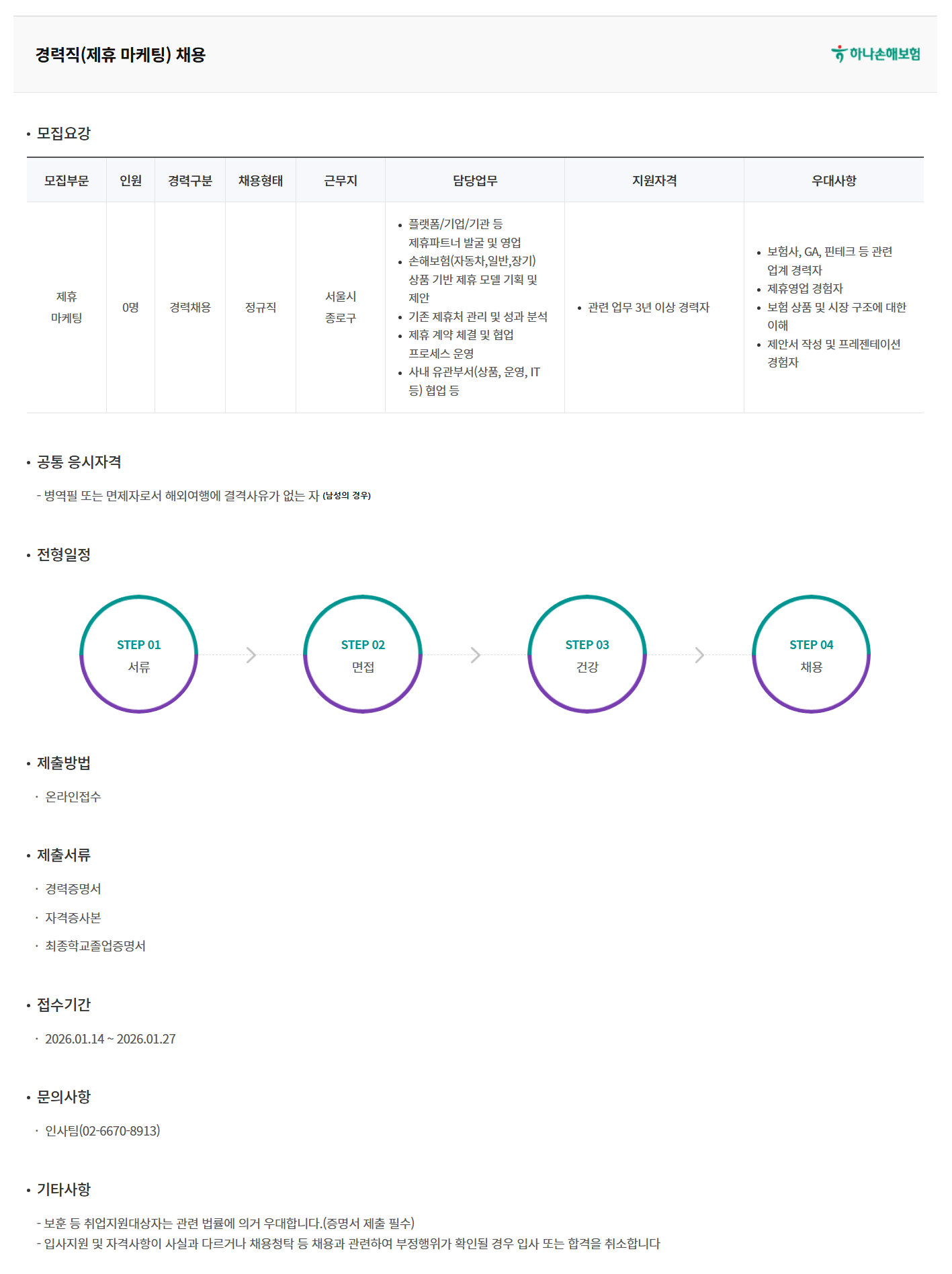 »ç³» À¯°üºÎ¼(»óǰ, ¿î¿µ, IT µî) Çù¾÷ µî °ü·Ã ¾÷¹« 3³â ÀÌ»ó °æ·ÂÀÚ º¸Çè»ç, GA, ÇÉÅ×Å© µî °ü·Ã ¾÷°è °æ·ÂÀÚ