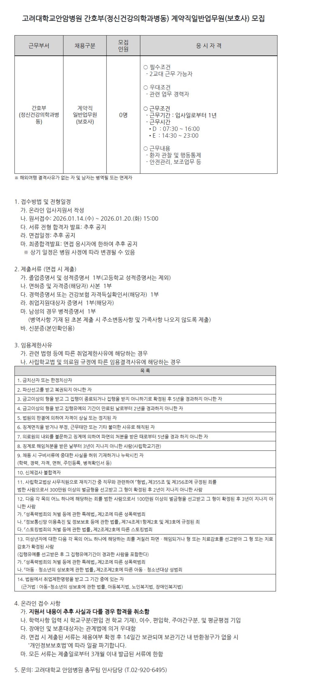 [¾È¾Ïº´¿ø 25-260]°£È£ºÎ(Á¤½Å°Ç°ÀÇÇаúº´µ¿) °è¾àÁ÷ ÀϹݾ÷¹«¿ø(º¸È£»ç) ¸ðÁý