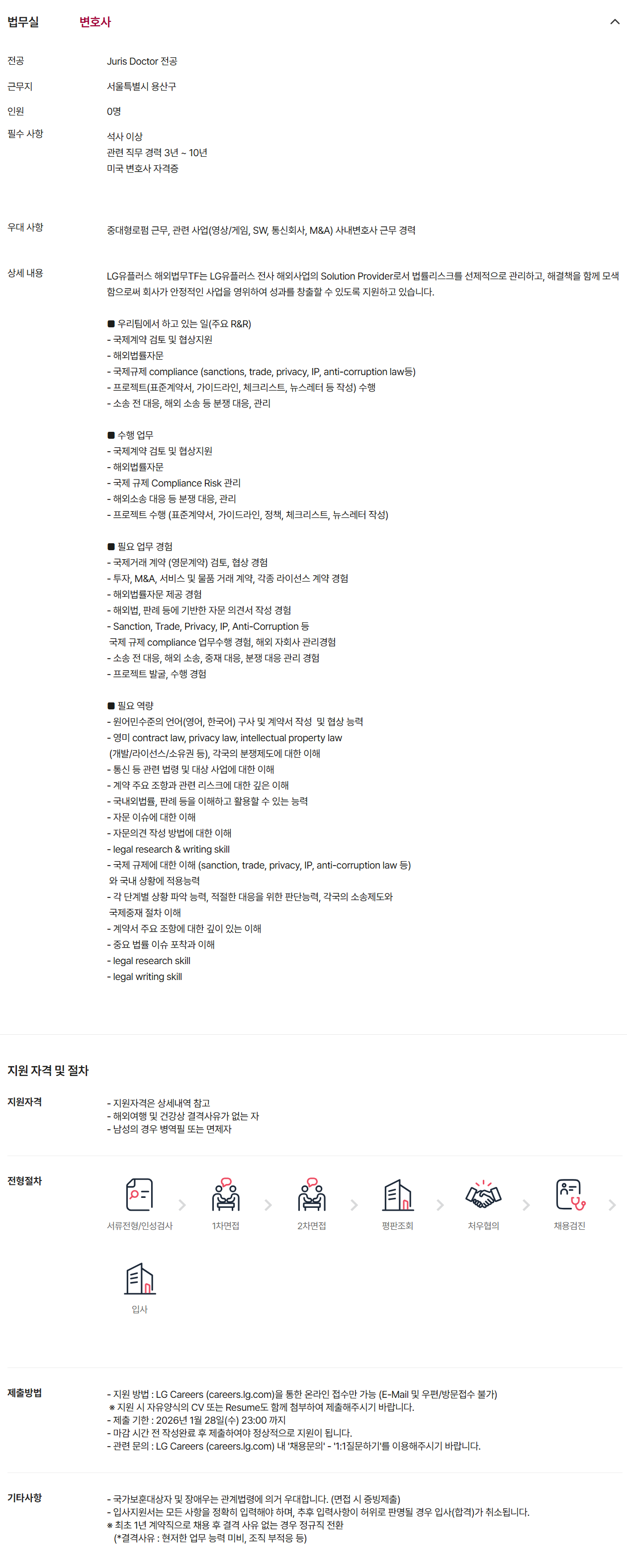 Áß´ëÇü·ÎÆß ±Ù¹«, °ü·Ã »ç¾÷(¿µ»ó/°ÔÀÓ, SW, Åë½Åȸ»ç, M&A) »ç³»º¯È£»ç ±Ù¹« °æ·Â