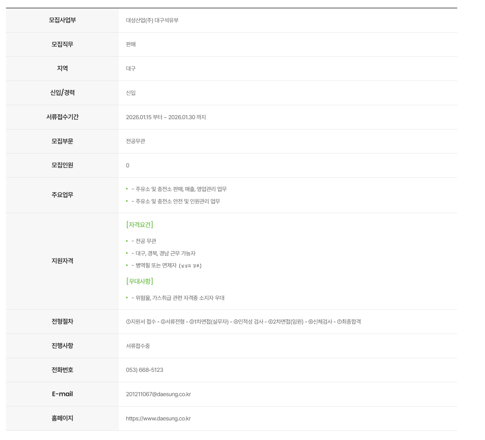 ´ë¼º»ê¾÷¢ß´ë±¸¼®À¯°¡½º»ç¾÷ºÎ ÆÇ¸Å(¿µ¾÷)°ü¸® ½ÅÀÔ»ç¿ø ä¿ë