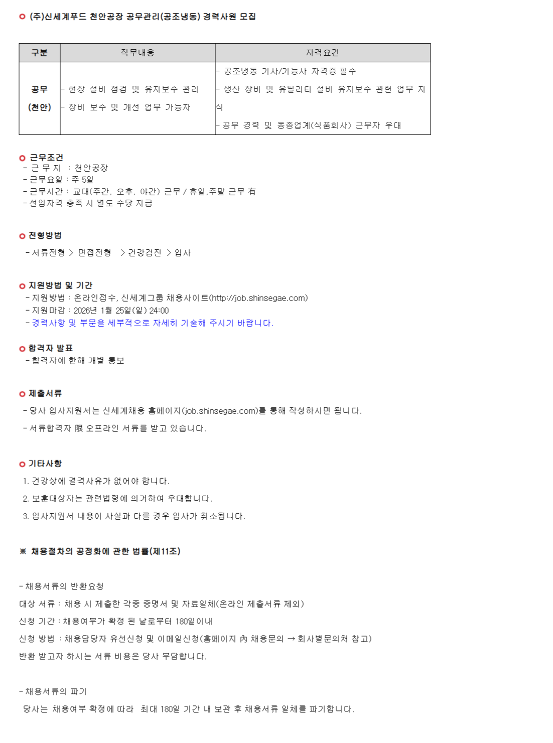 (ÁÖ)½Å¼¼°èǪµå õ¾È°øÀå °ø¹«°ü¸®(°øÁ¶³Ãµ¿) °æ·Â»ç¿ø ¸ðÁý