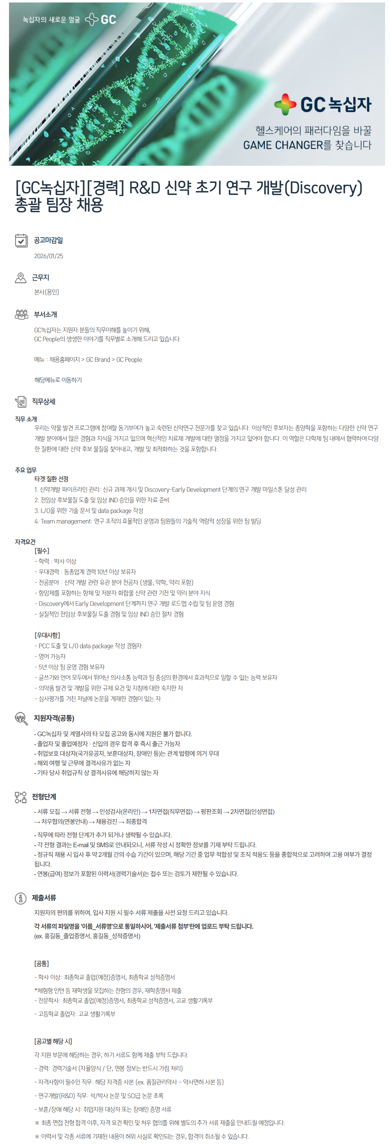¿ì¸®´Â ¾à¹° ¹ß°ß ÇÁ·Î±×·¥¿¡ Âü¿©ÇÒ µ¿±âºÎ¿©°¡ ³ô°í ¼÷·ÃµÈ ½Å¾à¿¬±¸ Àü¹®°¡¸¦ ã°í ÀÖ½À´Ï´Ù. ÀÌ»óÀûÀÎ Èĺ¸ÀÚ´Â Á¾¾çÇÐÀ» Æ÷ÇÔÇÏ´Â ´Ù¾çÇÑ ½Å¾à ¿¬±¸ °³¹ß ºÐ¾ß¿¡¼ ¸¹Àº °æÇè°ú Áö½ÄÀ» °¡Áö°í ÀÖÀ¸¸ç Çõ½ÅÀûÀÎ Ä¡·áÁ¦ °³¹ß¿¡ ´ëÇÑ ¿Á¤À» °¡Áö°í ÀÖ¾î¾ß ÇÕ´Ï´Ù. ÀÌ ¿ªÇÒÀº ´ÙÇÐÁ¦ ÆÀ ³»¿¡¼ Çù·ÂÇÏ¿© ´Ù¾çÇÑ Áúȯ¿¡ ´ëÇÑ ½Å¾à Èĺ¸ ¹°ÁúÀ» ã¾Æ³»°í, °³¹ß ¹× ÃÖÀûÈÇÏ´Â °ÍÀ» Æ÷ÇÔÇÕ´Ï´Ù.