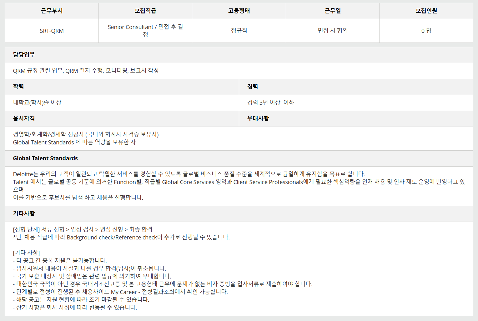 SRT-QRM Senior Consultant / ¸éÁ¢ ÈÄ °áÁ¤ Á¤±ÔÁ÷ ¸éÁ¢ ½Ã ÇùÀÇ 0 ¸í