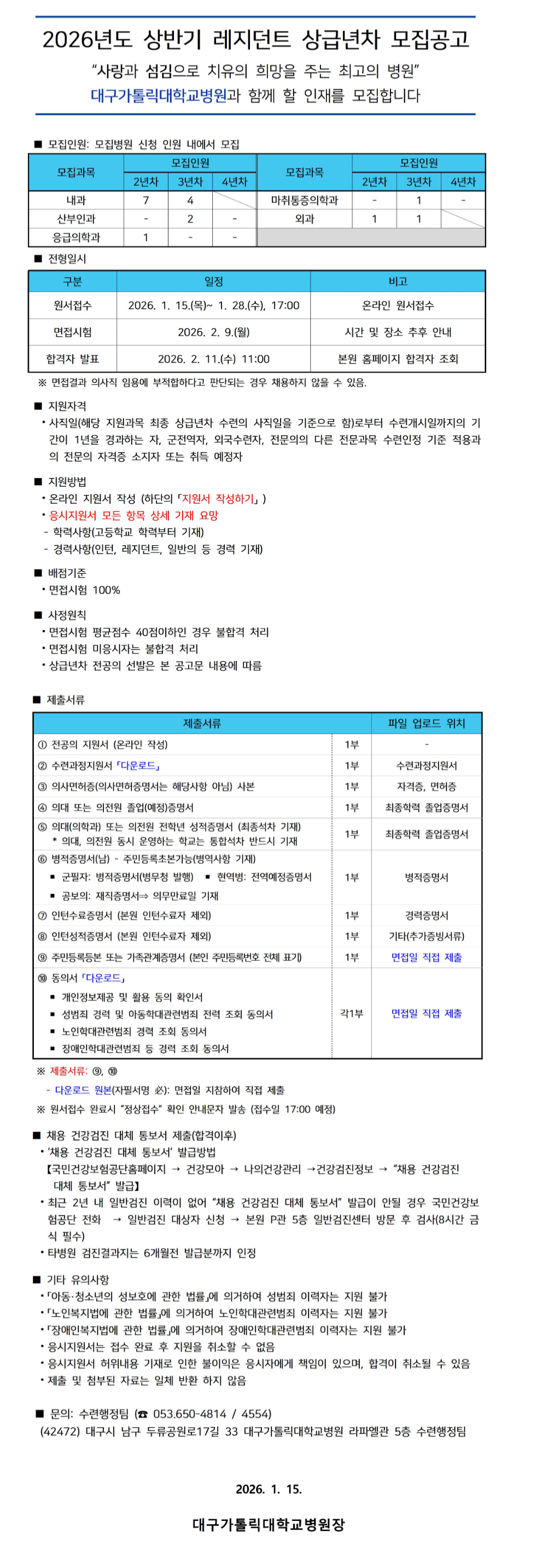 2026³âµµ »ó¹Ý±â ·¹Áö´øÆ® »ó±Þ³âÂ÷ ¸ðÁý°ø°í