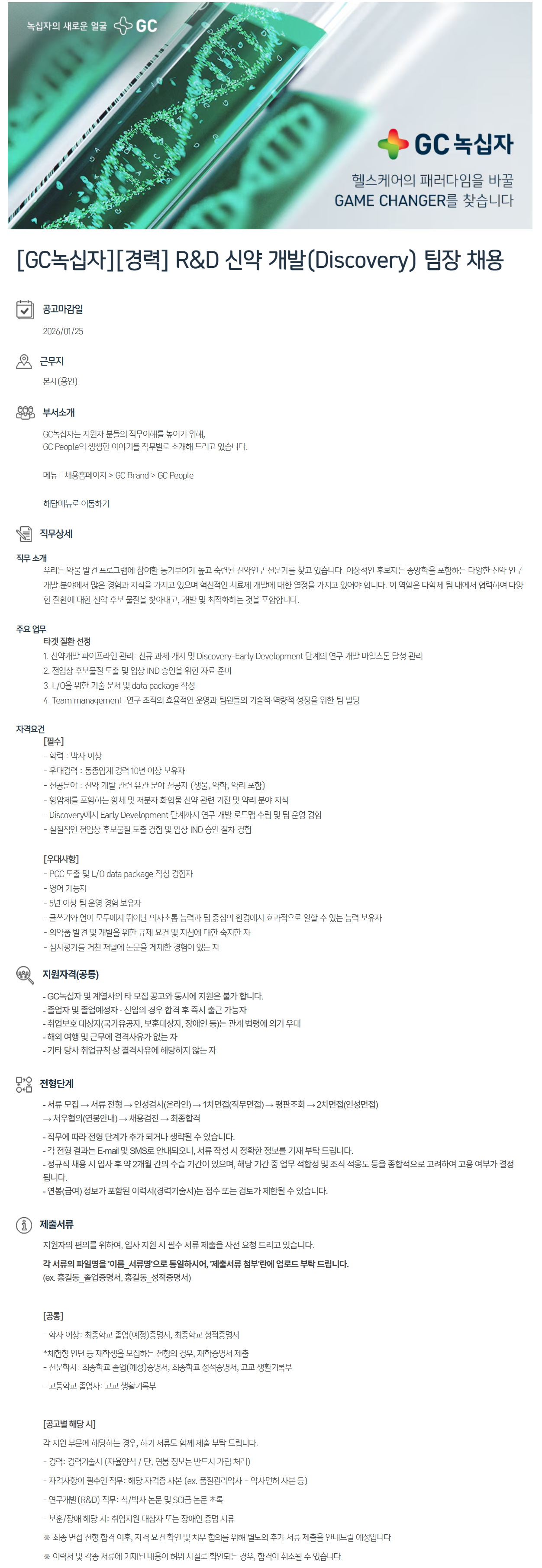 ¿ì¸®´Â ¾à¹° ¹ß°ß ÇÁ·Î±×·¥¿¡ Âü¿©ÇÒ µ¿±âºÎ¿©°¡ ³ô°í ¼÷·ÃµÈ ½Å¾à¿¬±¸ Àü¹®°¡¸¦ ã°í ÀÖ½À´Ï´Ù. ÀÌ»óÀûÀÎ Èĺ¸ÀÚ´Â Á¾¾çÇÐÀ» Æ÷ÇÔÇÏ´Â ´Ù¾çÇÑ ½Å¾à ¿¬±¸ °³¹ß ºÐ¾ß¿¡¼ ¸¹Àº °æÇè°ú Áö½ÄÀ» °¡Áö°í ÀÖÀ¸¸ç Çõ½ÅÀûÀÎ Ä¡·áÁ¦ °³¹ß¿¡ ´ëÇÑ ¿Á¤À» °¡Áö°í ÀÖ¾î¾ß ÇÕ´Ï´Ù. ÀÌ ¿ªÇÒÀº ´ÙÇÐÁ¦ ÆÀ ³»¿¡¼ Çù·ÂÇÏ¿© ´Ù¾çÇÑ Áúȯ¿¡ ´ëÇÑ ½Å¾à Èĺ¸ ¹°ÁúÀ» ã¾Æ³»°í, °³¹ß ¹× ÃÖÀûÈÇÏ´Â °ÍÀ» Æ÷ÇÔÇÕ´Ï´Ù.