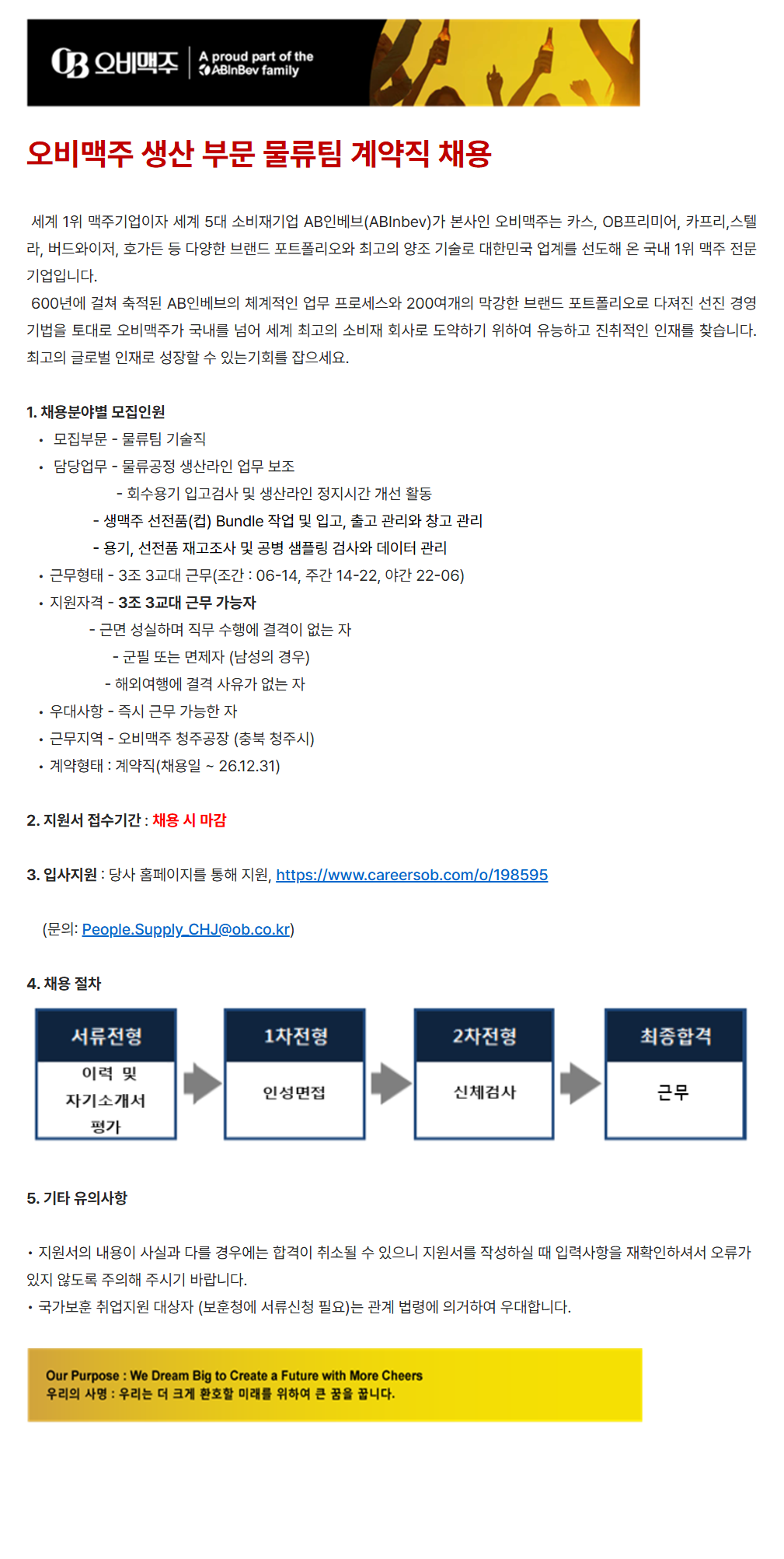 ¿Àºñ¸ÆÁÖ »ý»ê ºÎ¹® ¹°·ùÆÀ °è¾àÁ÷ ä¿ë