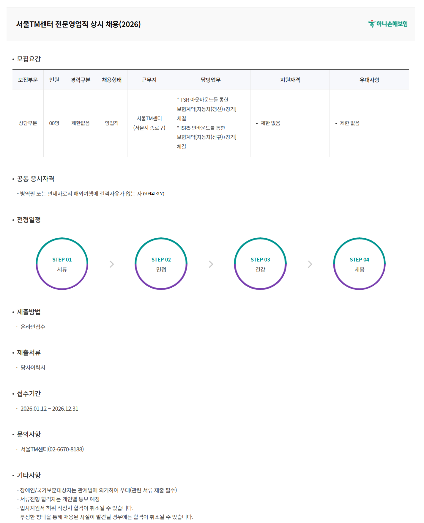 »ó´ãºÎºÐ 00¸í Á¦ÇѾøÀ½ ¿µ¾÷Á÷ ¼¿ïTM¼¾ÅÍ(¼¿ï½Ã Á¾·Î±¸) * TSR ¾Æ¿ô¹Ù¿îµå¸¦ ÅëÇÑ º¸Çè°è¾à[ÀÚµ¿Â÷(°»½Å)+Àå±â] ü°á