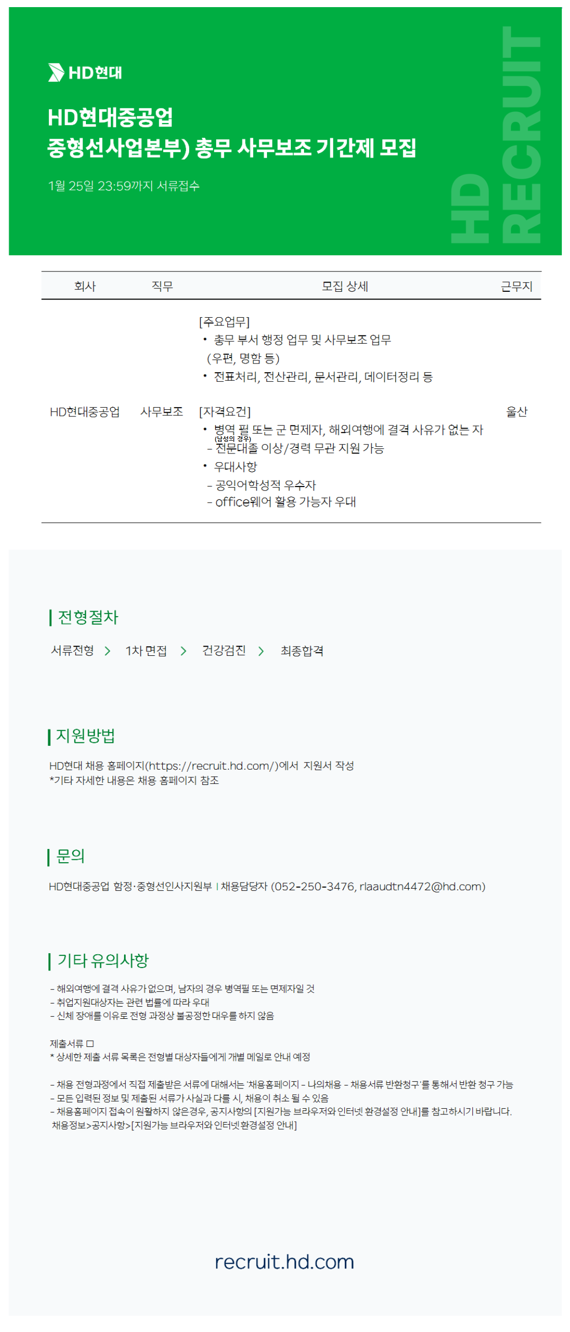 [HDÇö´ëÁß°ø¾÷] ÁßÇü¼± Ãѹ« »ç¹«º¸Á¶ ±â°£Á¦ ¸ðÁý