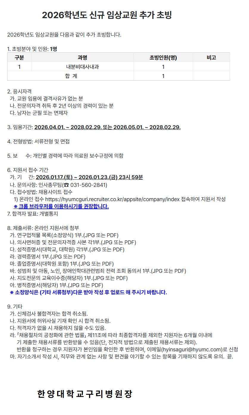 1) ¿Â¶óÀÎ Á¢¼ö https://hyumcguri.recruiter.co.kr/appsite/company/index Á¢¼ÓÇÏ¿© Áö¿ø¼ ÀÛ¼º