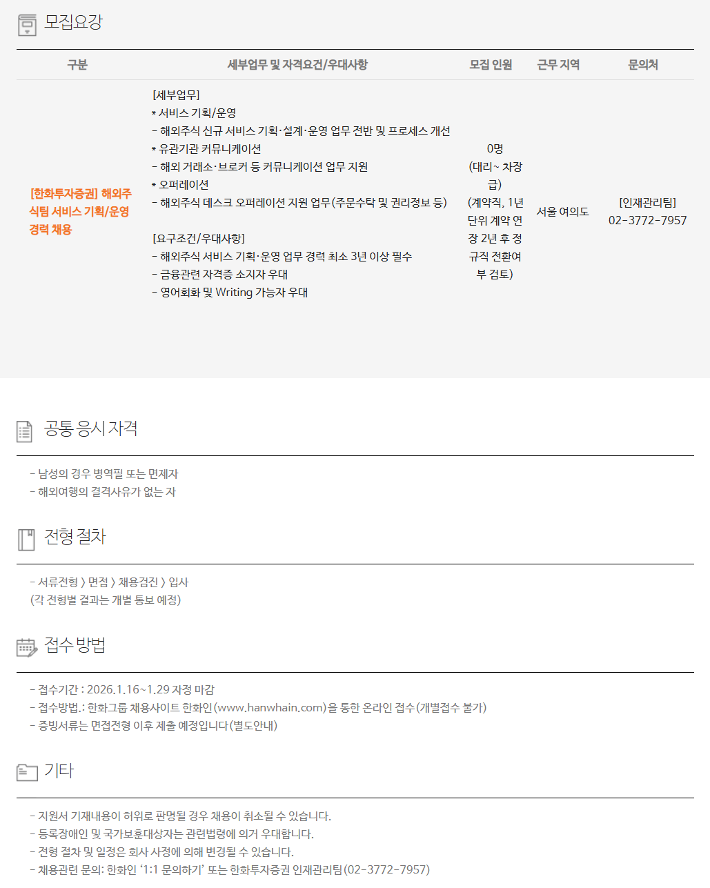 ±¸ºÐ ¼¼ºÎ¾÷¹« ¹× ÀÚ°Ý¿ä°Ç/¿ì´ë»çÇ× ¸ðÁý Àοø ±Ù¹« Áö¿ª ¹®ÀÇó [ÇÑÈ­ÅõÀÚÁõ±Ç] ÇØ¿ÜÁֽįÀ ¼­ºñ½º ±âȹ/¿î¿µ °æ·Â ä¿ë [¼¼ºÎ¾÷¹«] * ¼­ºñ½º ±âȹ/¿î¿µ - ÇØ¿ÜÁÖ½Ä ½Å±Ô ¼­ºñ½º ±âȹ¡¤¼³°è¡¤¿î¿µ ¾÷¹« Àü¹Ý ¹× ÇÁ·Î¼¼½º °³¼± * À¯°ü±â°ü Ä¿¹Â´ÏÄÉÀÌ¼Ç - ÇØ¿Ü °Å·¡¼Ò¡¤ºê·ÎÄ¿ µî Ä¿¹Â´ÏÄÉÀÌ¼Ç ¾÷¹« Áö¿ø * ¿ÀÆÛ·¹ÀÌ¼Ç - ÇØ¿ÜÁÖ½Ä µ¥½ºÅ© ¿ÀÆÛ·¹ÀÌ¼Ç Áö¿ø ¾÷¹«(ÁÖ¹®¼öŹ ¹× ±Ç¸®Á¤º¸ µî) [¿ä±¸Á¶°Ç/¿ì´ë»çÇ×] - ÇØ¿ÜÁÖ½Ä ¼­ºñ½º ±âȹ¡¤¿î¿µ ¾÷¹« °æ·Â ÃÖ¼Ò 3³â ÀÌ»ó Çʼö - ±ÝÀ¶°ü·Ã ÀÚ°ÝÁõ ¼ÒÁöÀÚ ¿ì´ë - ¿µ¾îȸȭ ¹× Writing °¡´ÉÀÚ ¿ì´ë 0¸í (´ë¸®~ Â÷Àå±Þ) (°è¾àÁ÷, 1³â ´ÜÀ§ °è¾à ¿¬Àå 2³â ÈÄ Á¤±ÔÁ÷ Àüȯ¿©ºÎ °ËÅä) ¼­¿ï ¿©Àǵµ [ÀÎÀç°ü¸®ÆÀ] ***-****-****