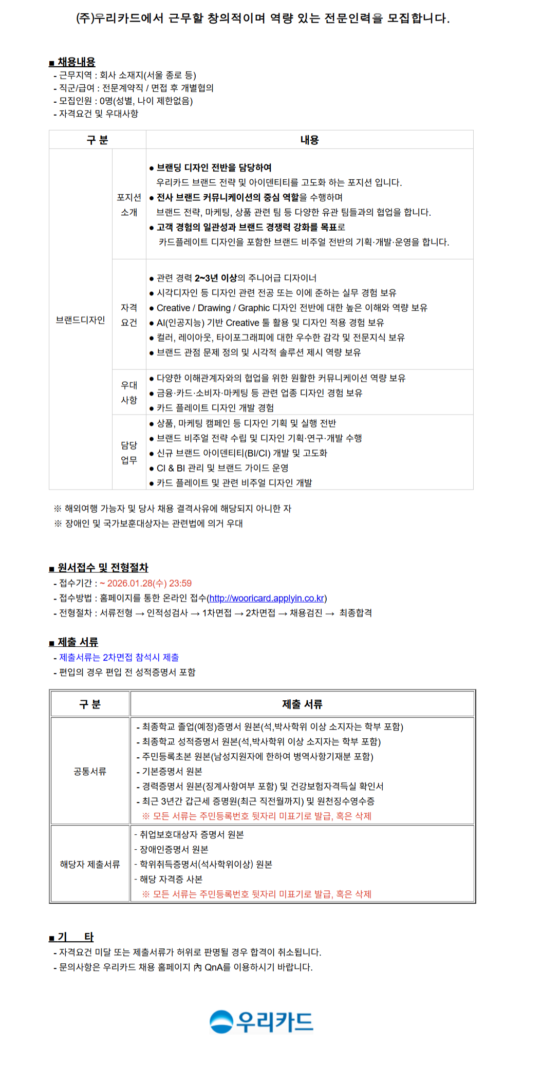 ¿ì¸®Ä«µå °æ·ÂÁ÷ ä¿ë °ø°í(ºê·£µåµðÀÚÀÎ/Àü¹®°è¾àÁ÷)