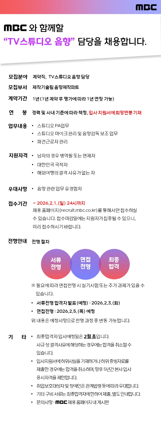 MBC Á¦ÀÛ±â¼úÆÀ À½ÇâÁ¦ÀÛÆÄÆ® TV½ºÆ©µð¿À À½Çâ ´ã´ç ¸ðÁý