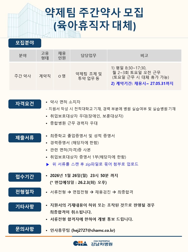 [°³²Â÷º´¿ø] °³²Â÷º´¿ø ÁÖ°£¾à»ç ¸ðÁý(À°¾ÆÈÞÁ÷ÀÚ ´ëü)