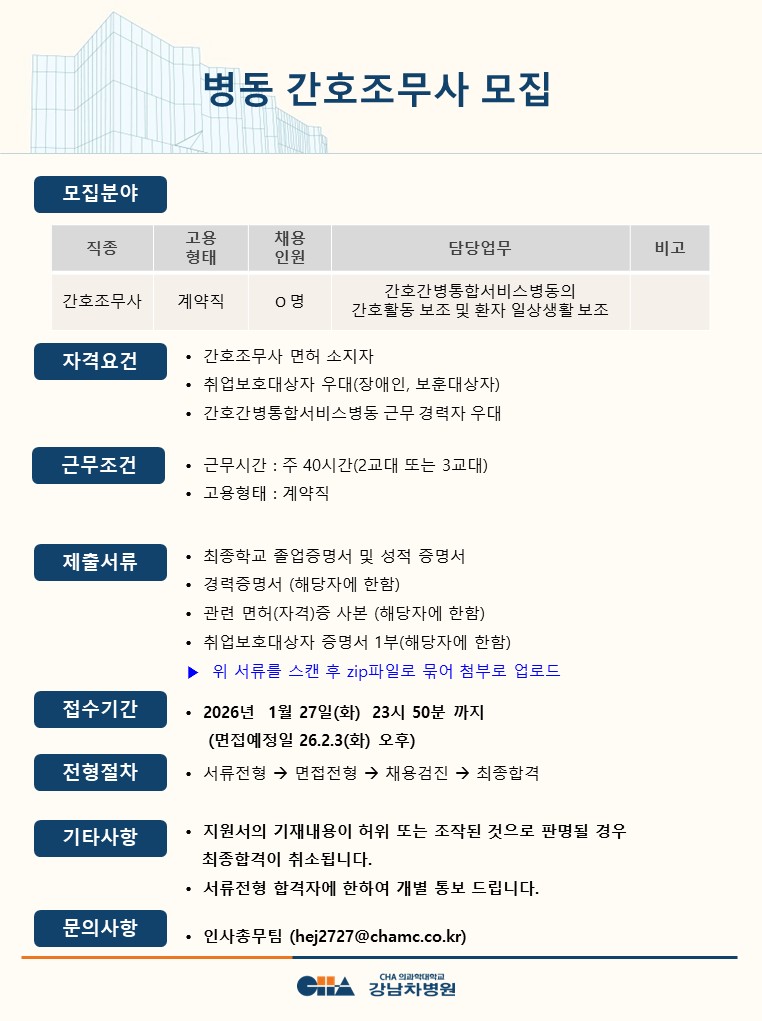 [°³²Â÷º´¿ø] °£È£°£º´º´µ¿ °£È£Á¶¹«»ç ¸ðÁý